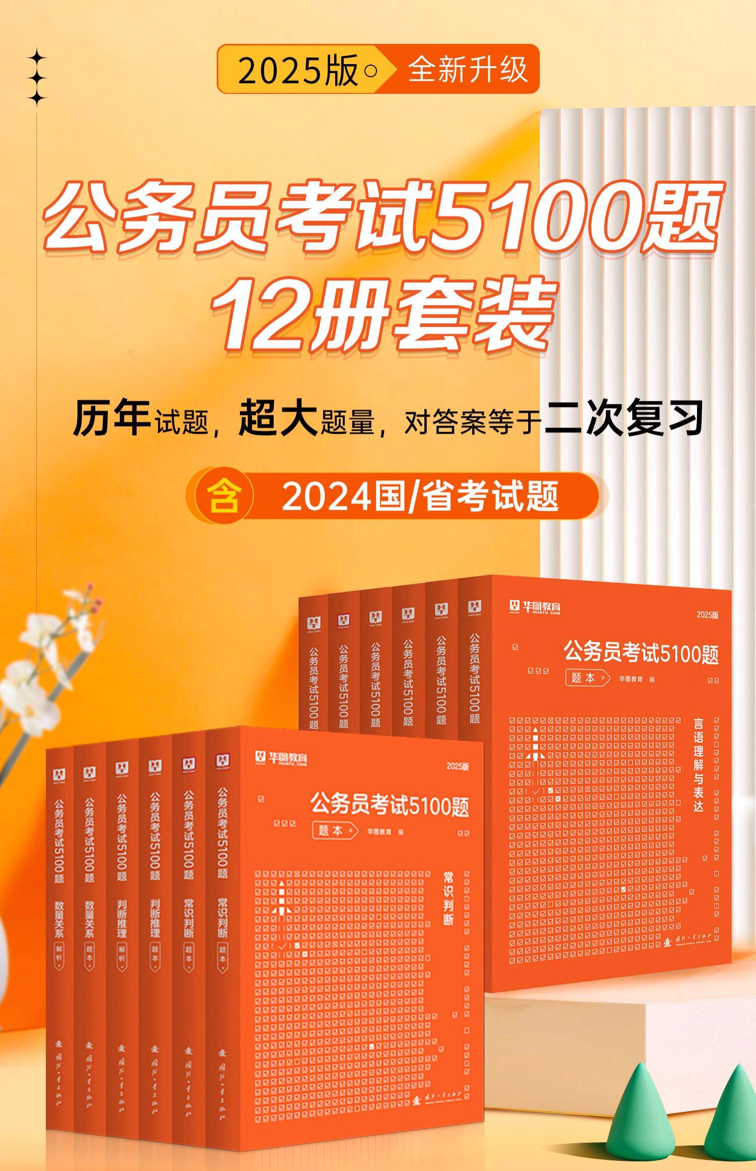 【华图学习平台】为您提供2025版公务员考试(行测+申论)5100题 12本,更多最新全国通用公务员学习考试网校课程及视频请关注华图学习平台!